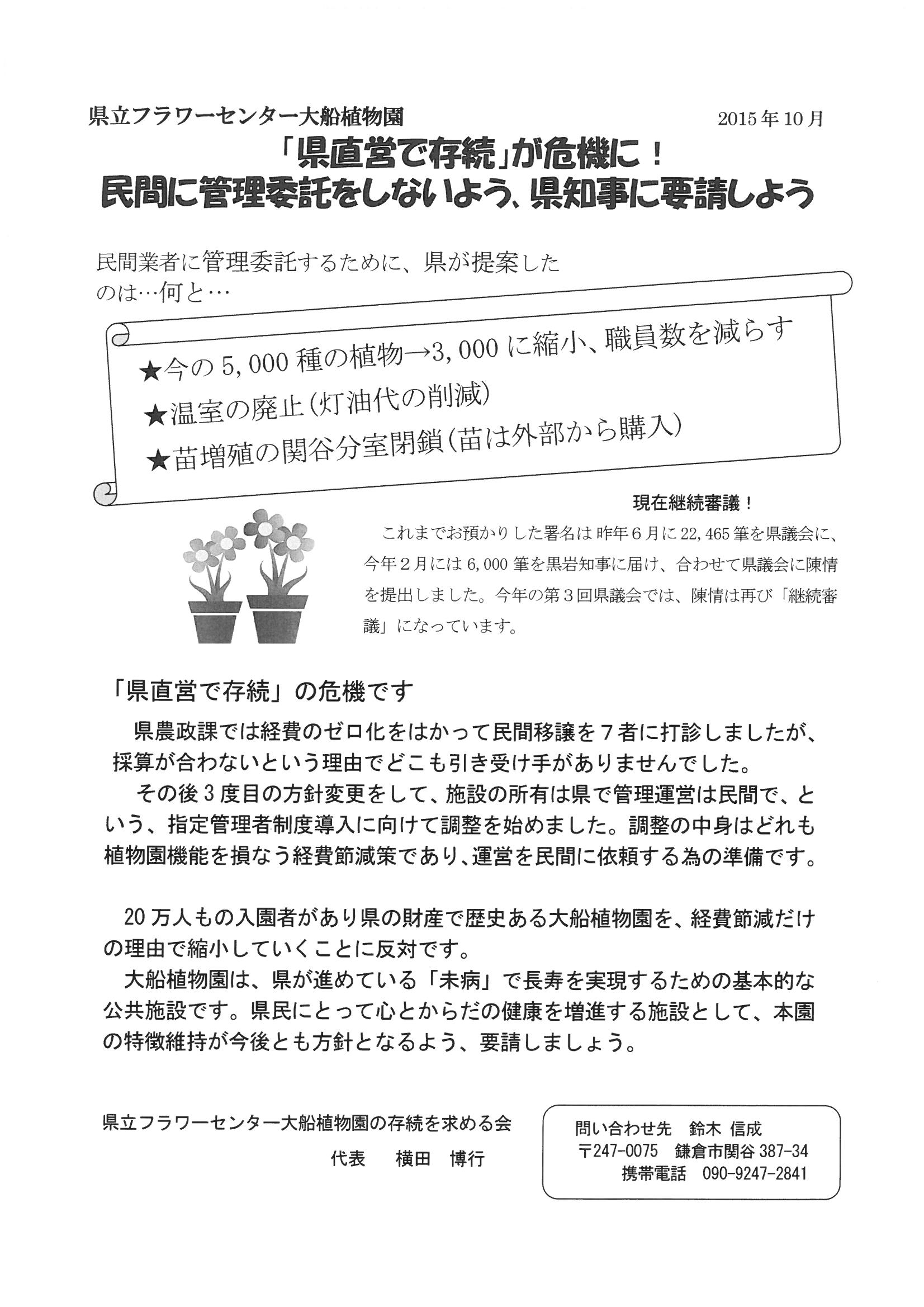 県民の憩いの場をまもるため、民間ではなく県の直営での存続を求めます。署名のご協力をよろしくお願いいたします。(スタッフ)