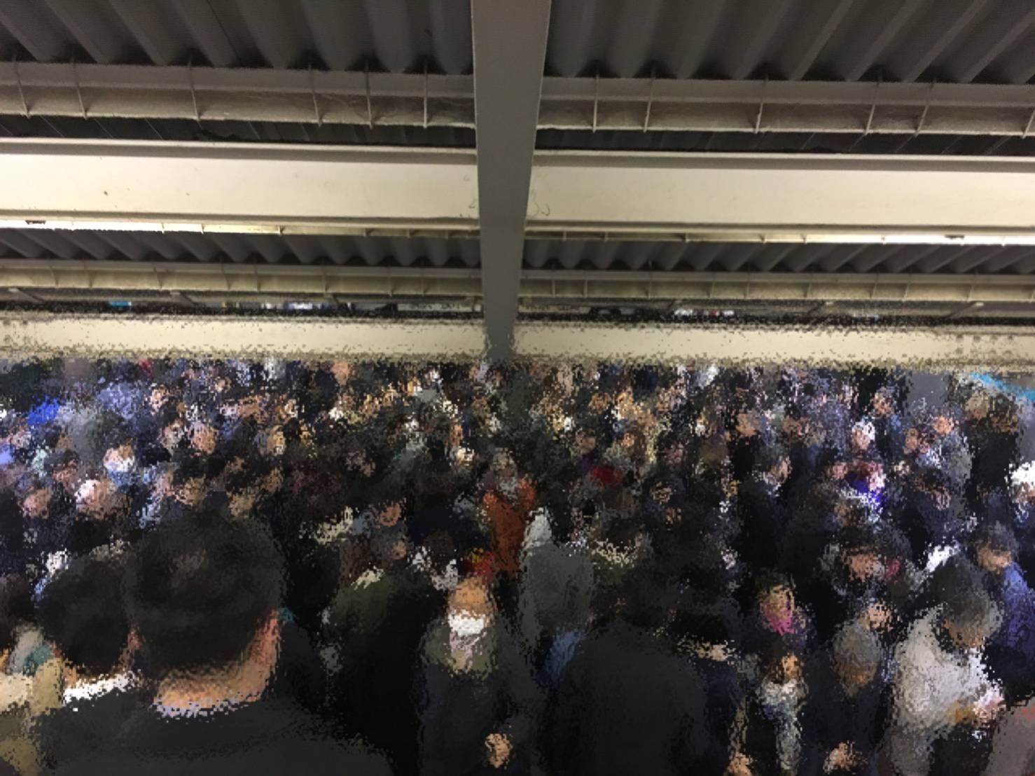 普段、少し電車が遅延すると下の写真のように大混雑となっており、安心して駅を利用するためにはホームドアは必須という状況でした。私たちにもたくさん要望が寄せられていました。