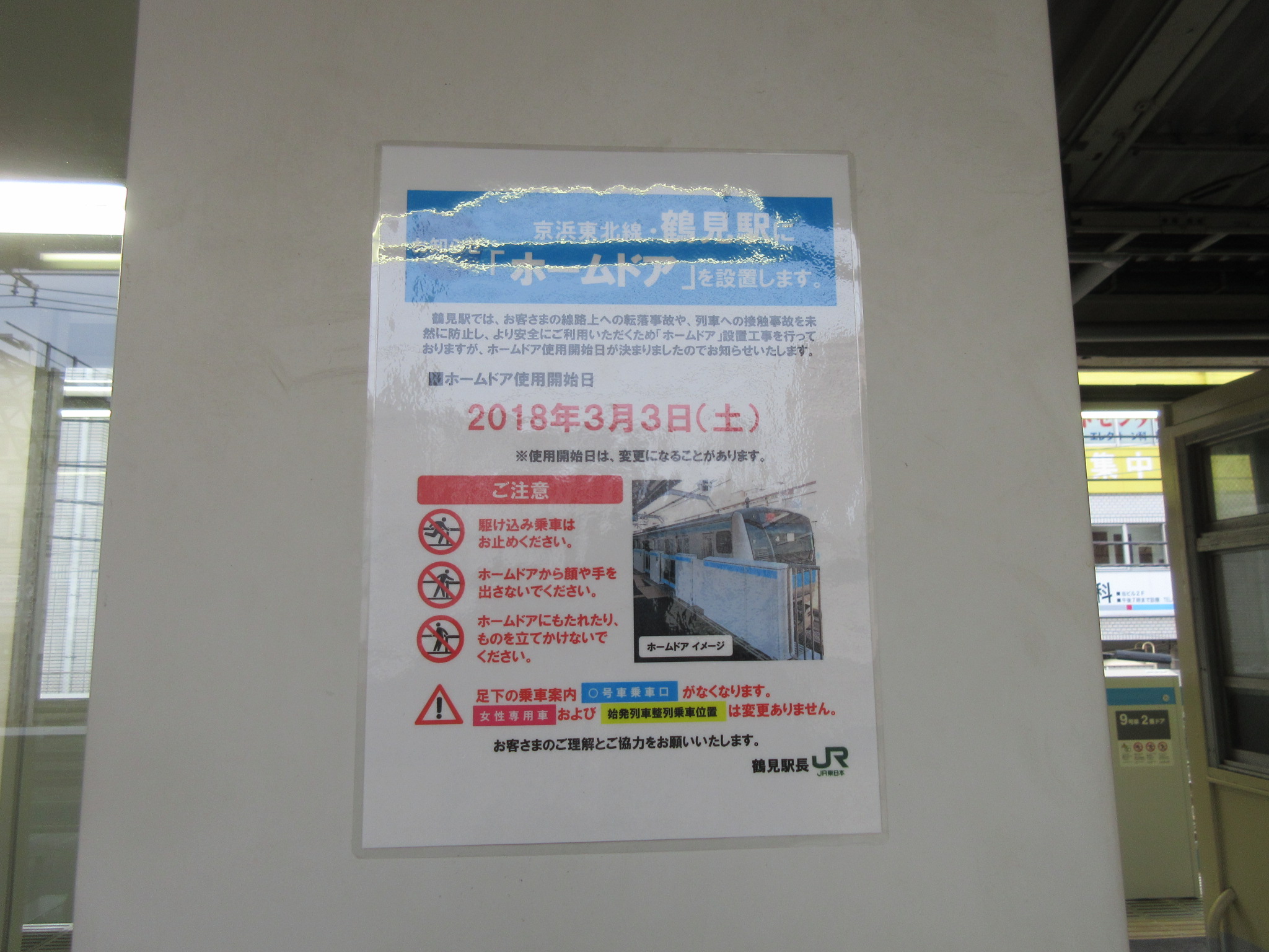 3月3日に、神奈川県内JR駅では初となるホームドアが鶴見駅で稼働しました。